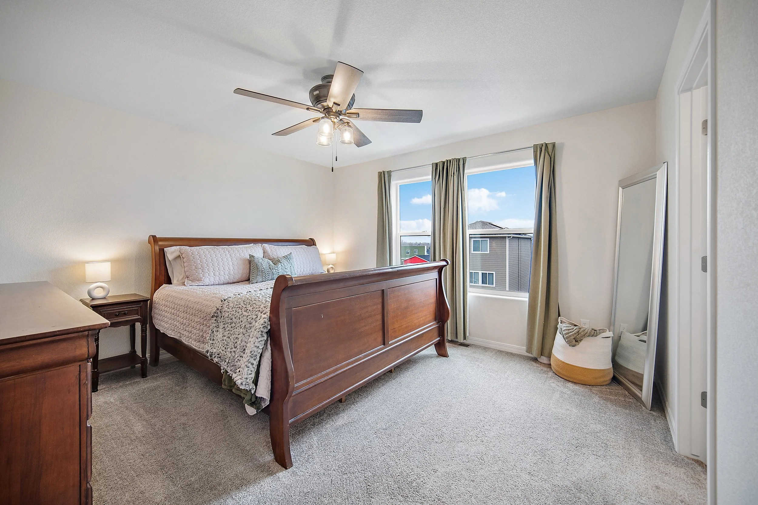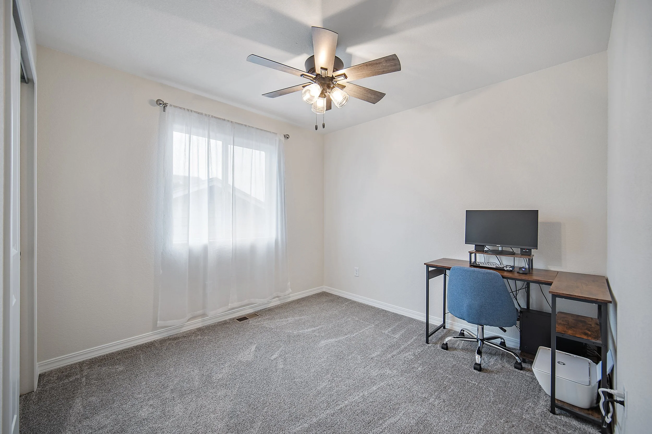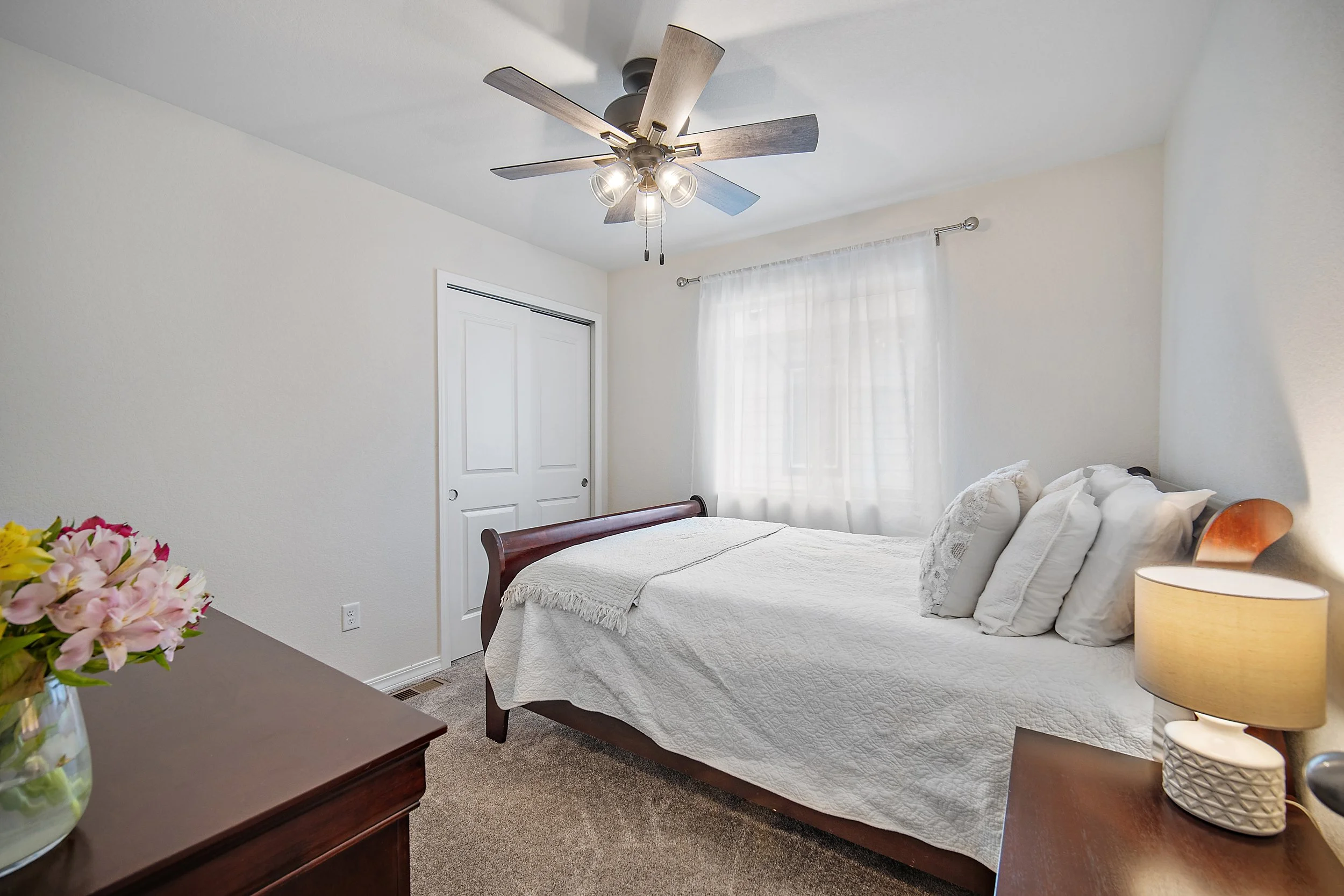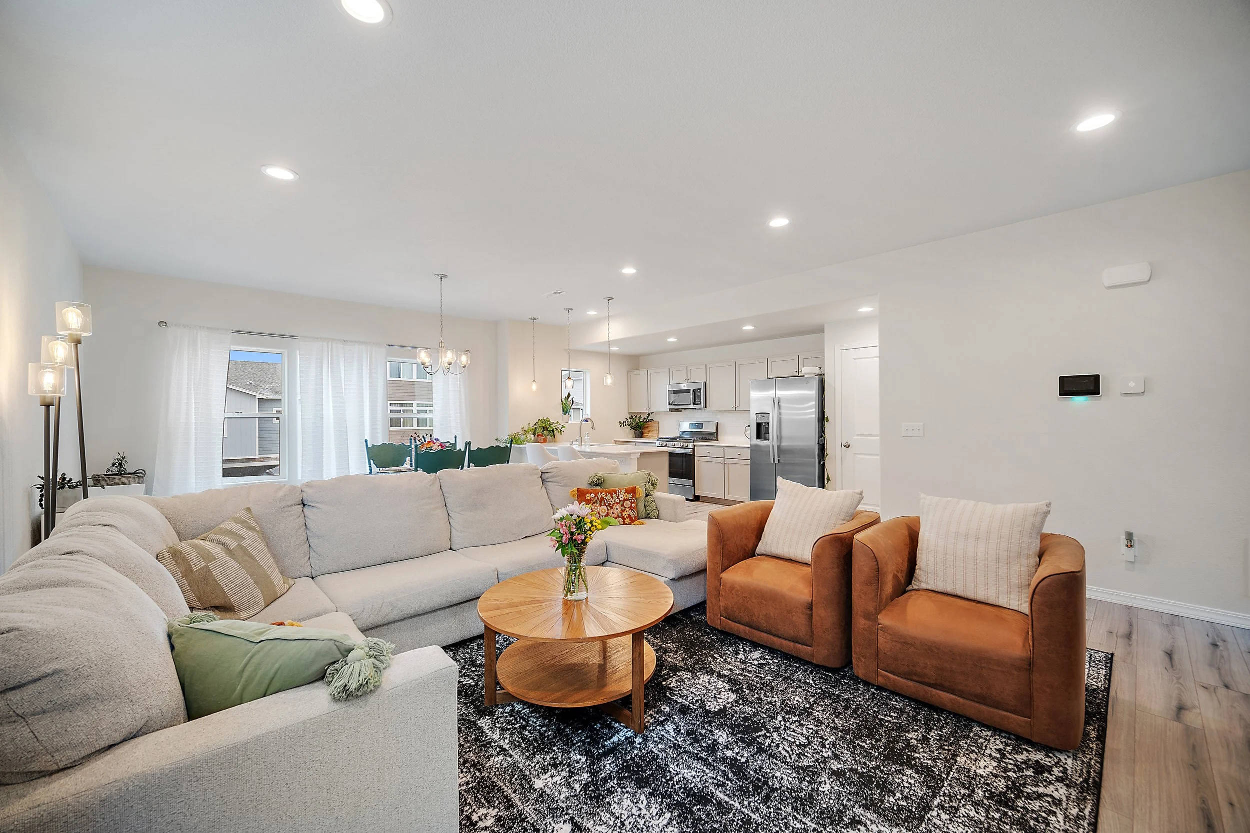 Looking for a modern home in a central location? This beautiful home is ready for you, featuring 3 bedrooms, 3 bathrooms, a 2 car garage, and a sleek kitchen with quartz countertops, stainless steel appliances, and gas stove top. Thoughtful updates have been made to change out some of the builder grade fixtures, such as lights, ceiling fans, and faucets. The private yard is low maintenance with an auto sprinkler system. Enjoy the community perks which include a gym, game room, meeting rooms, and park space!