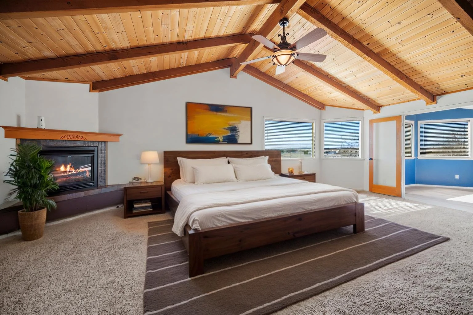 Looking for a spacious home on a large lot that's zoned for horses? This beautiful home is ready for you! Featuring 4 bedrooms, each with their own bathroom, including a private primary suite with a separate sitting area, 5 piece bathroom, and a giant walk-in closet. The gorgeous kitchen features slate tile flooring, granite countertops, stainless steel appliances, and updated light fixtures. You'll find three fireplaces throughout the home, including one in the primary bedroom, new flooring, vaulted ceilings, 2022 roof, 2022 water heater, and a huge low-maintenance xeriscaped yard on this 1.62 acre property. All of this with sprawling mountain views! Solar panels are paid off!